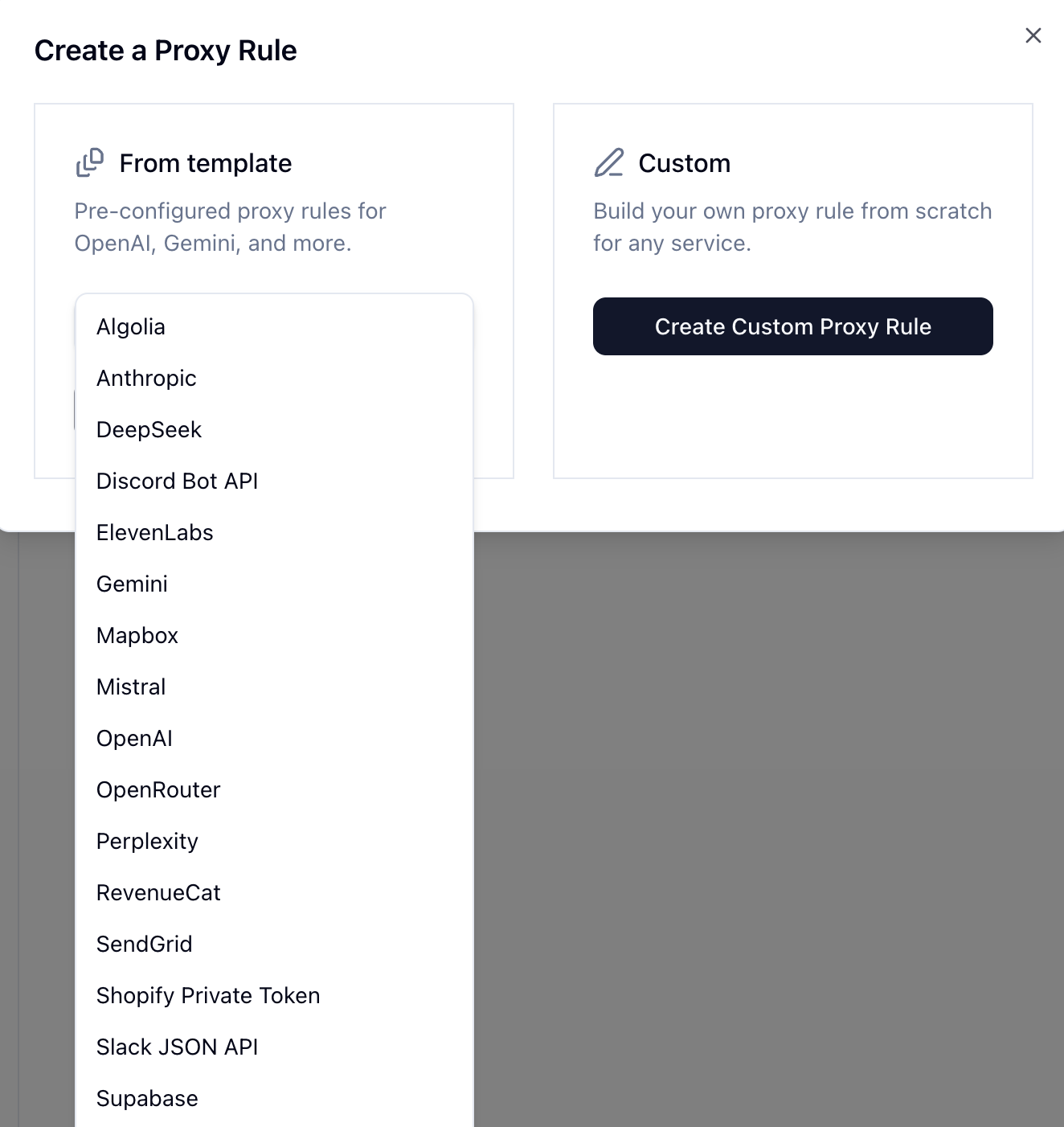These templates cover the most common services, but KVProxy isn't limited to them. You can create custom proxy rules for any API: define the host, path, and how credentials should be injected (headers, URL parameters, or both). If a service uses an API key, KVProxy can protect it.